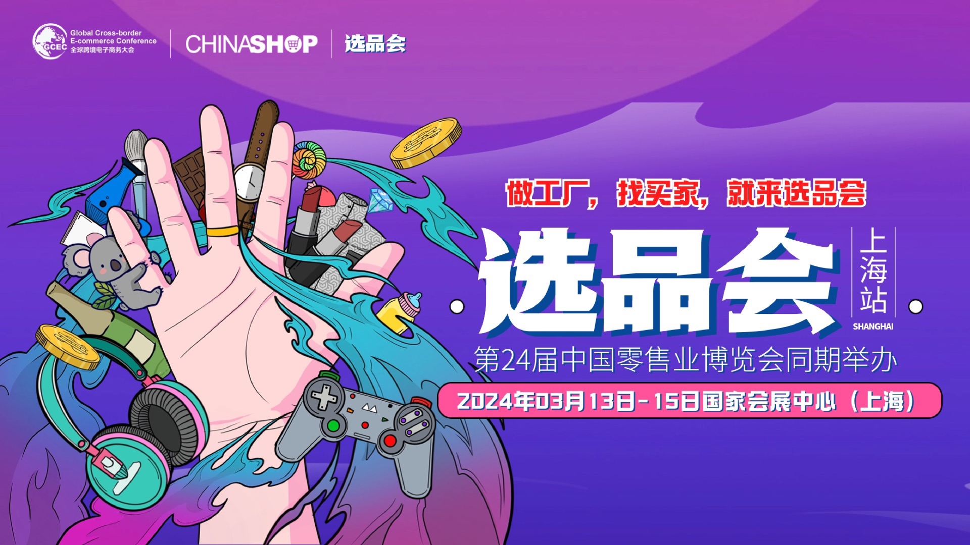 「选品会」源头工厂货源选品展览会,依托中国零售业博览会、全球跨境电子商务大会、中国电子商务博览会等平台资源,展示优质工厂产品,构建工程与买家(分销商)面对面直接接洽的平台。